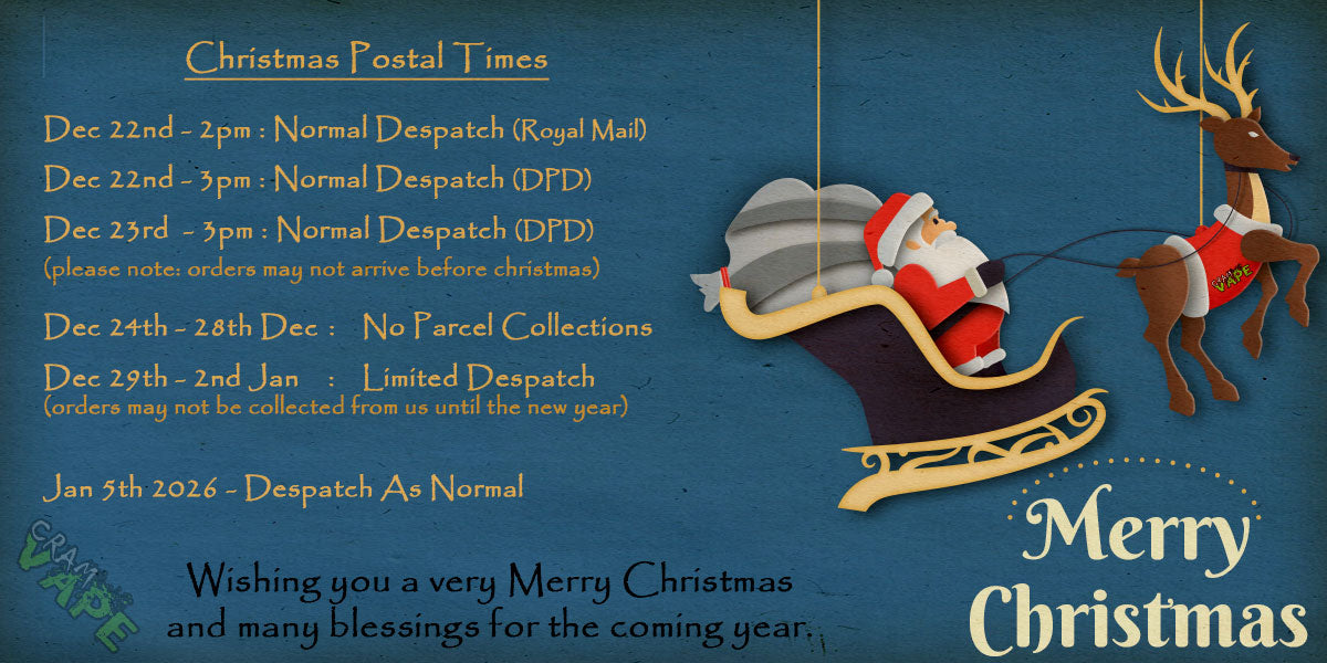 11.4 The vendor will not accept any liability for any loss incurred as a result of delayed or failed delivery. Any delivery dates given are estimated unless agreed in writing by an authorised representative of cramvape.co.uk.