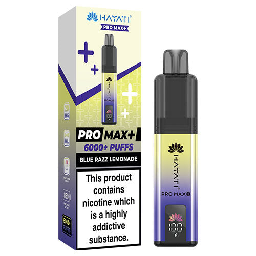 The Hayati Pro Max+ 6000, comes with a 2ml e-liquid tank capacity and refill container that automatically refills the tank when attached, 20mg/ml nicotine, with a Type-C rechargeable battery.