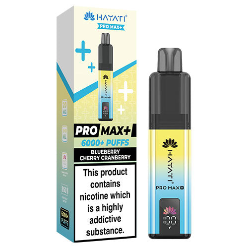 The Hayati Pro Max+ 6000, comes with a 2ml e-liquid tank capacity and refill container that automatically refills the tank when attached, 20mg/ml nicotine, with a Type-C rechargeable battery.