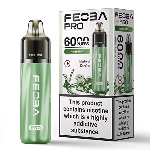 The Feoba Pro 6000, comes with 1x 2ml e-liquid tank capacity and a refill container that automatically refills the tank when attached, 20mg/ml nicotine, with a Type-C rechargeable battery.