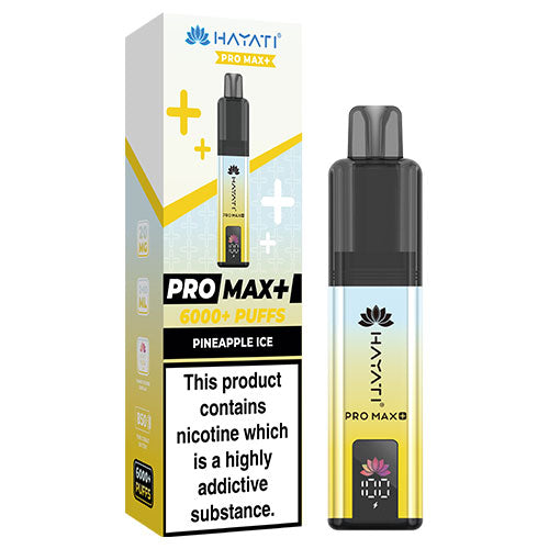 The Hayati Pro Max+ 6000, comes with a 2ml e-liquid tank capacity and refill container that automatically refills the tank when attached, 20mg/ml nicotine, with a Type-C rechargeable battery.