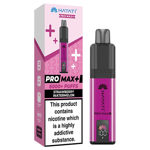 The Hayati Pro Max+ 6000, comes with a 2ml e-liquid tank capacity and refill container that automatically refills the tank when attached, 20mg/ml nicotine, with a Type-C rechargeable battery.