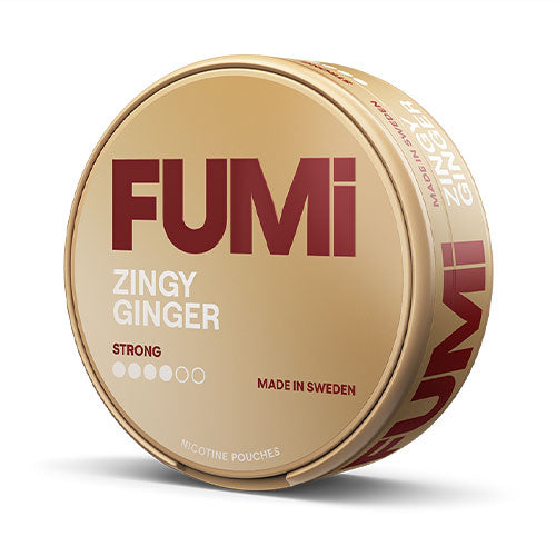 FUMi nicotine pouches with a Zingy Ginger flavour. 20 nicotine pouches per can. Ginger with a little spice, almost cola esque.